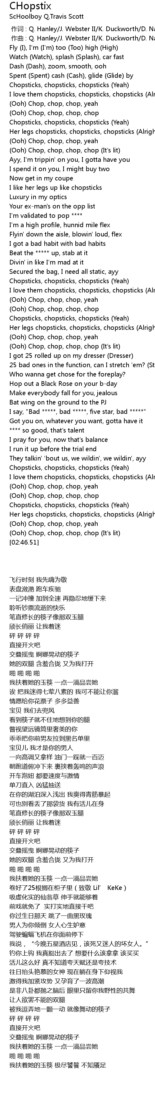 | [01:34.32] | Her legs chopsticks, chopsticks, chopsticks (Alright) |