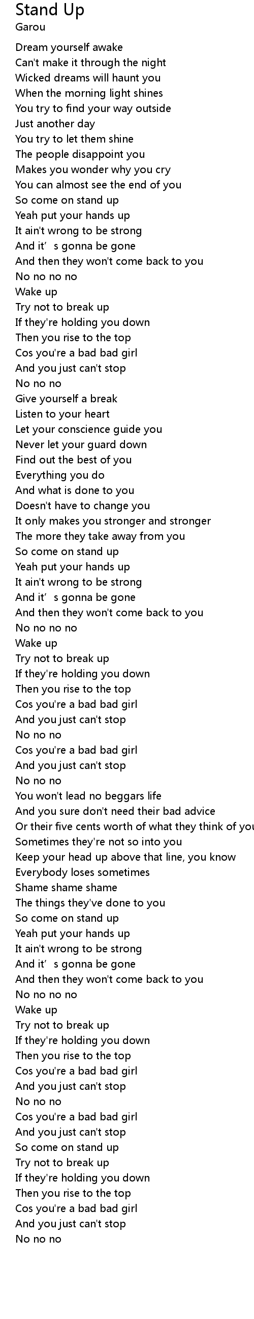 | [01:00.79] | So come on stand up |