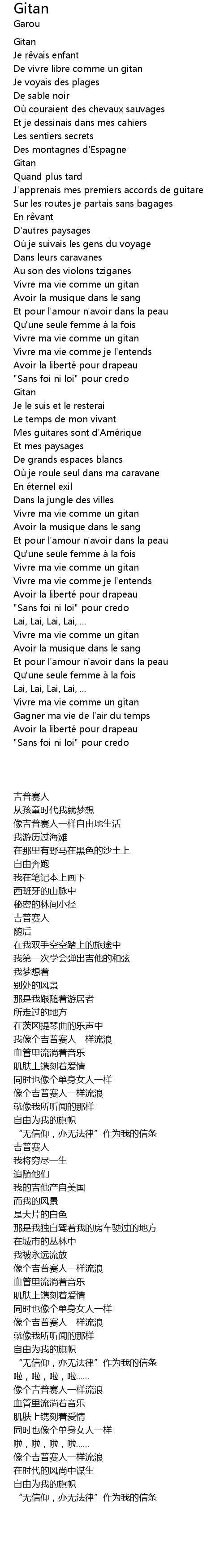 | [00:29.01] | De vivre libre comme un gitan |