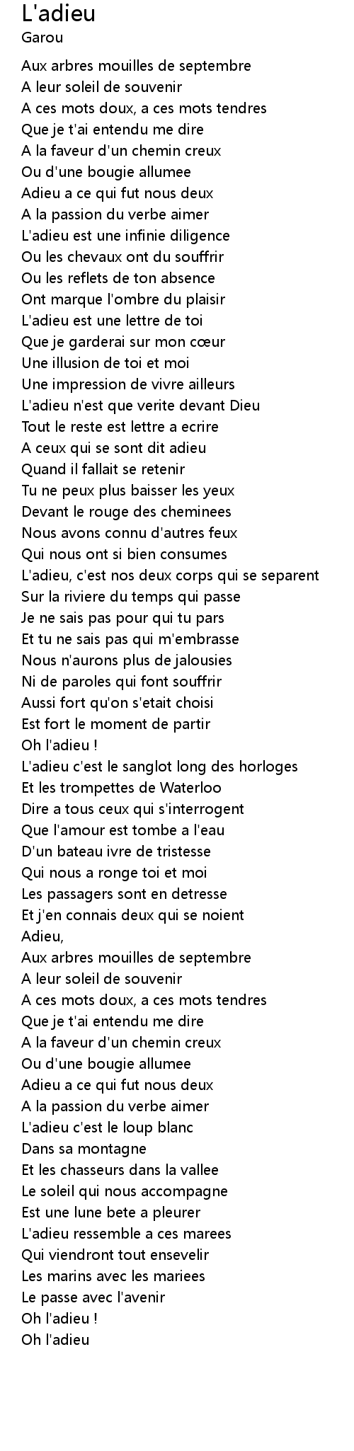 | Oh l'adieu |