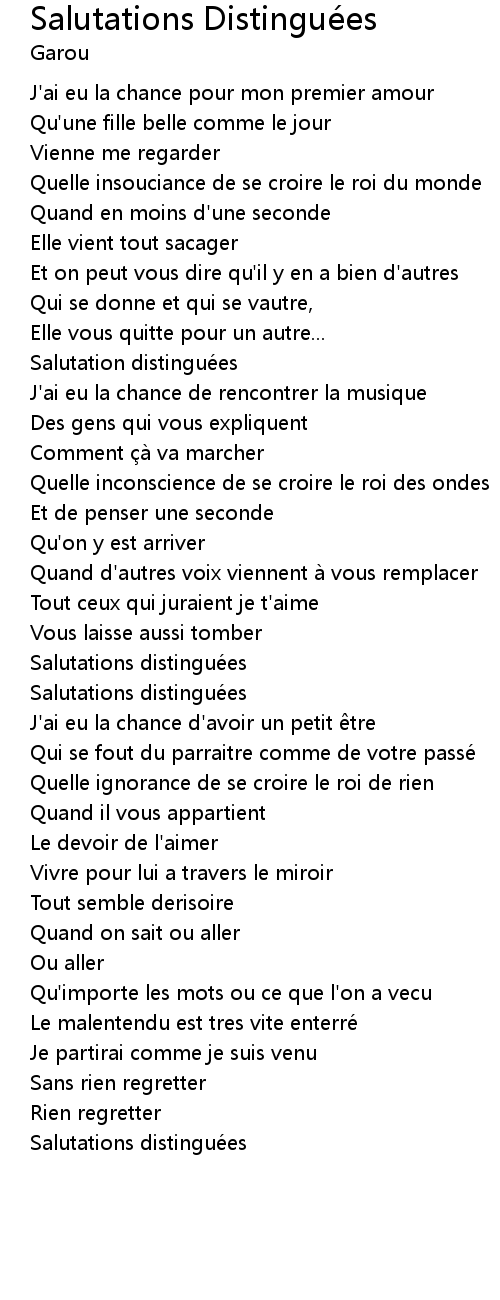 | 歌曲 | Salutations Distinguées |