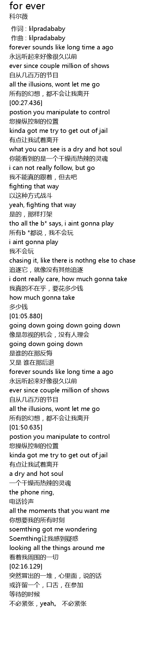 | [02:21.379] | 或许留一个,口舌,在参加 |