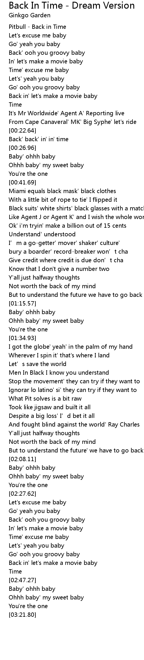 | [00:00.00] | Pitbull Back in Time |