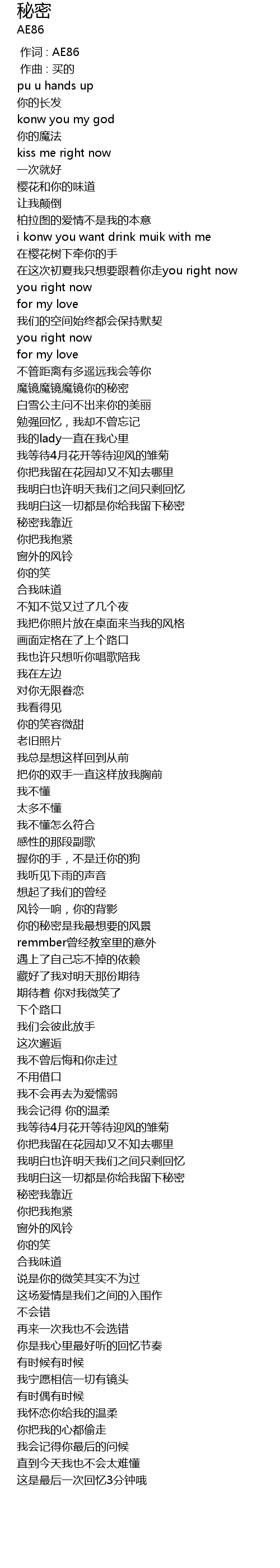 | [02:45.371] | 我明白这一切都是你给我留下秘密 |