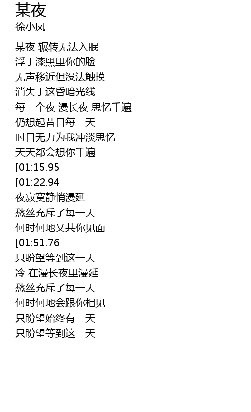 | [00:20.69] | mǒu yè zhǎn zhuǎn wú fǎ rù mián |