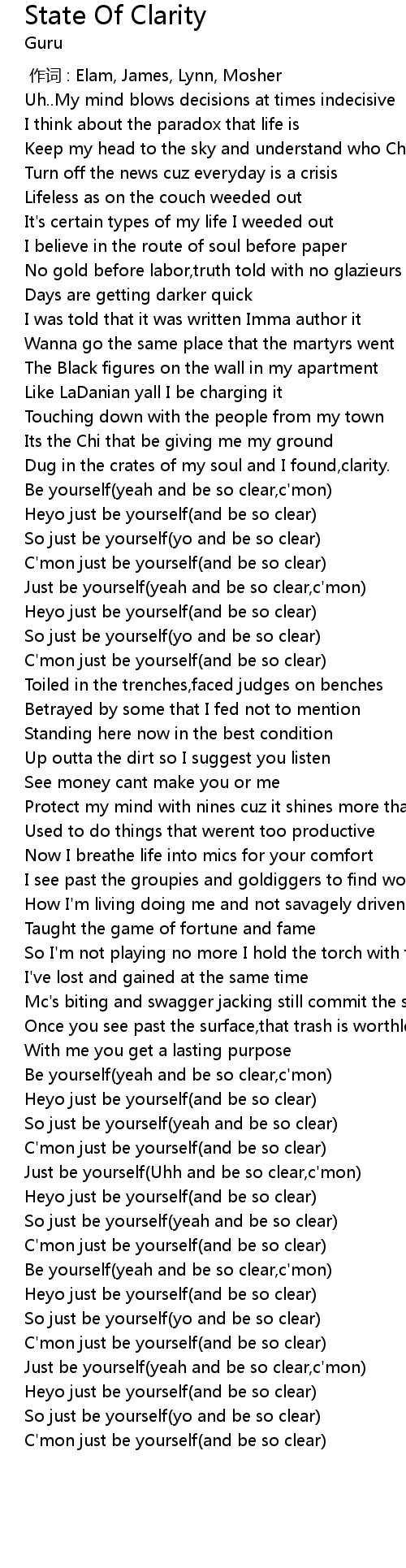 | [01:14.37] | So just be yourself yo and be so clear |