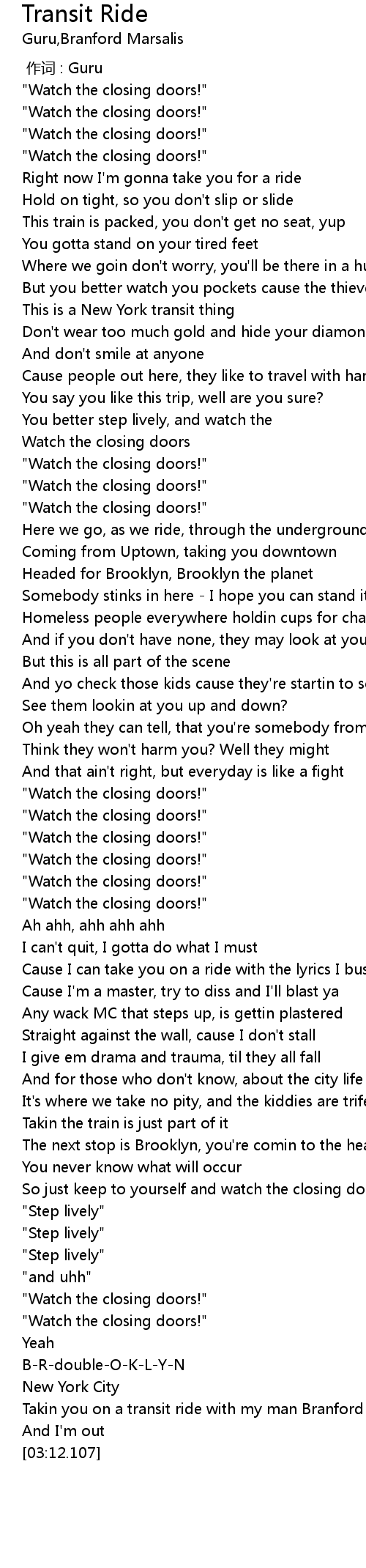 | [00:54.654] | "Watch the closing doors!" |
