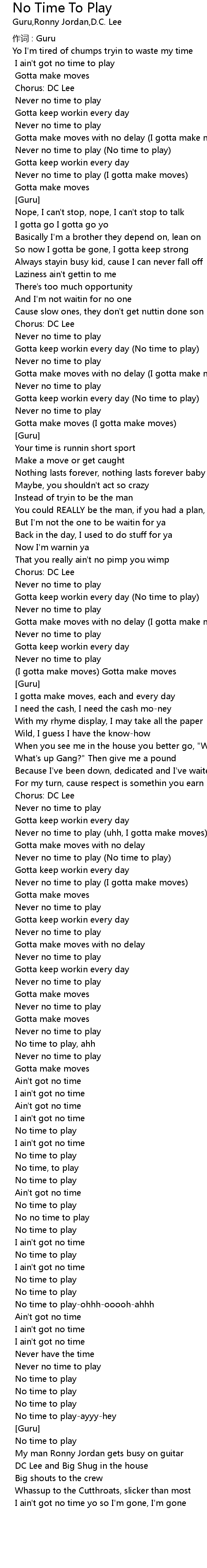| No time to play-ohhh-ooooh-ahhh | |