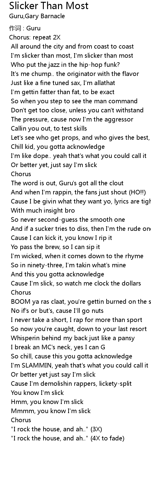 | I'm slicker than most, I'm slicker than most | |