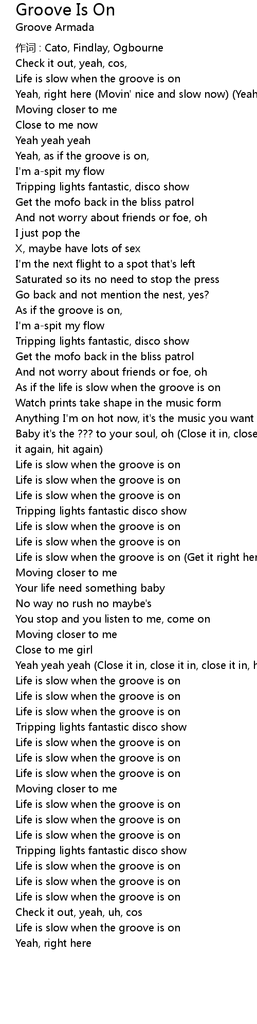 | As if the life is slow when the groove is on | |
