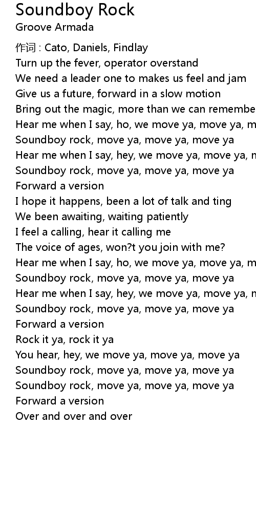 | Soundboy rock, move ya, move ya, move ya | |