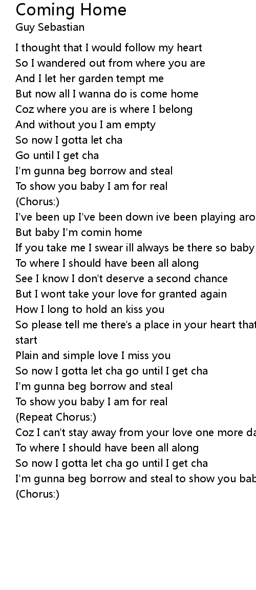 If you take me I swear ill always be there so baby I'm comin home |