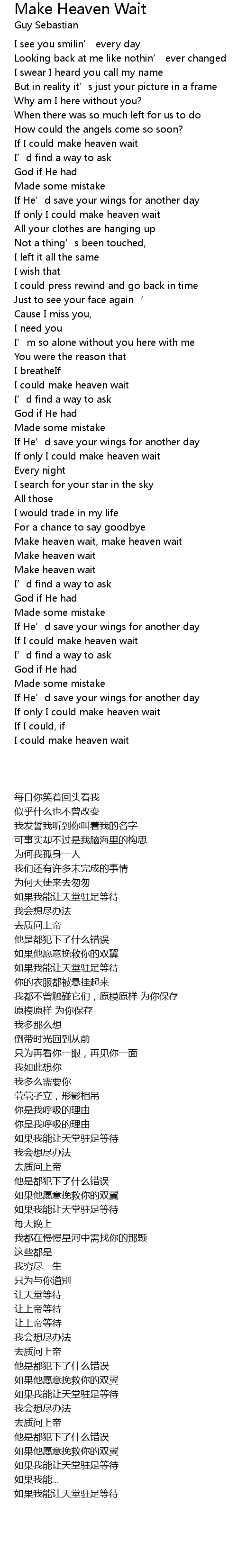 | 歌曲 | Make Heaven Wait |