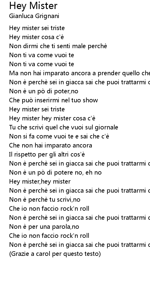 | Hey mister hey mister cosa c'e | |