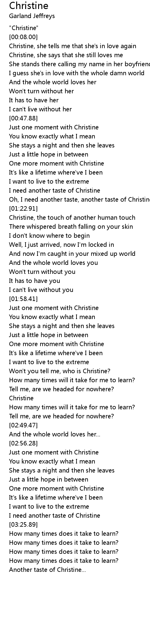 Won't you tell me, who is Christine? |