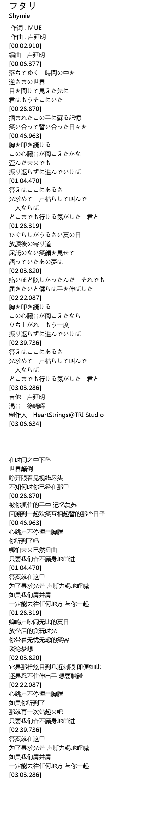 | [03:05.859] | 制作人:HeartStrings@TRI Studio |