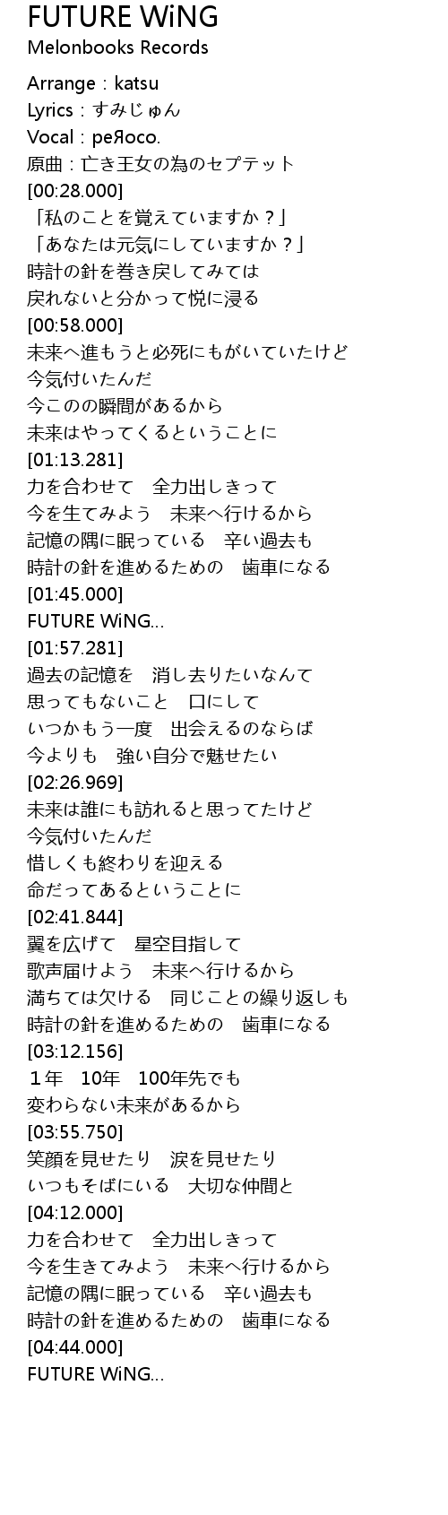 | [02:49.531] | 歌声届けよう 未来へ行けるから |