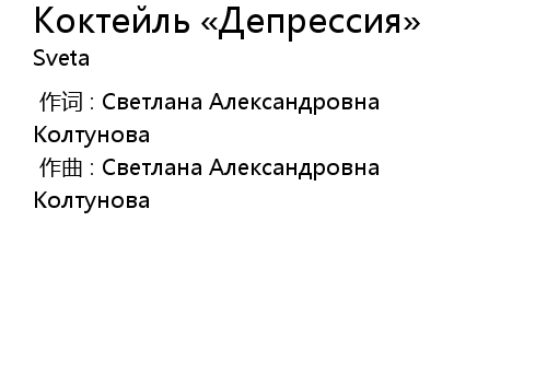 | 歌曲 | Коктейль «Депрессия» |