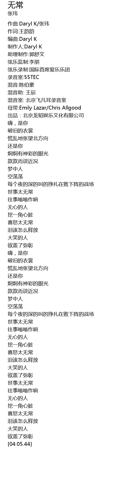 | [00:00.00] | 作曲:Daryl K/张玮 |