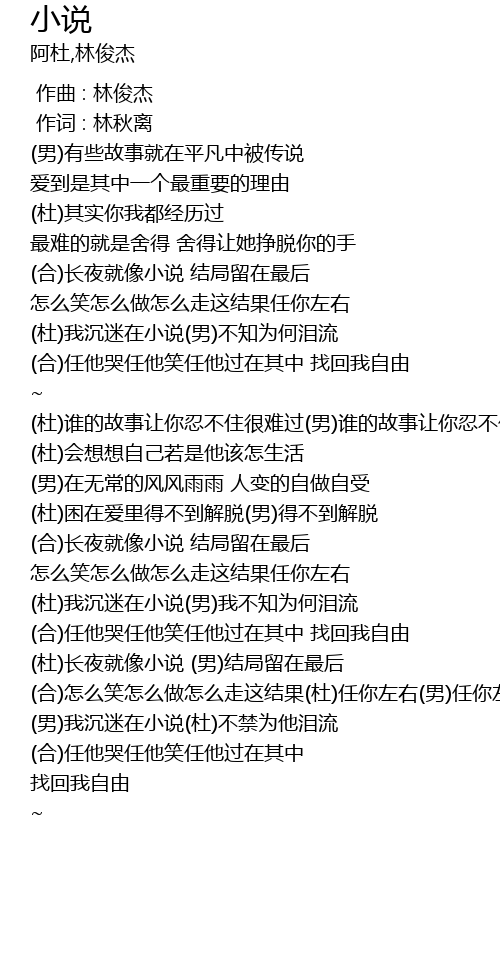 | [03:05.880] | (男)我沉迷在小说(杜)不禁为他泪流 |