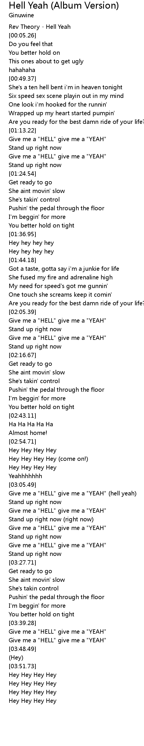 [03:44.97] Give me a "HELL" give me a "YEAH"