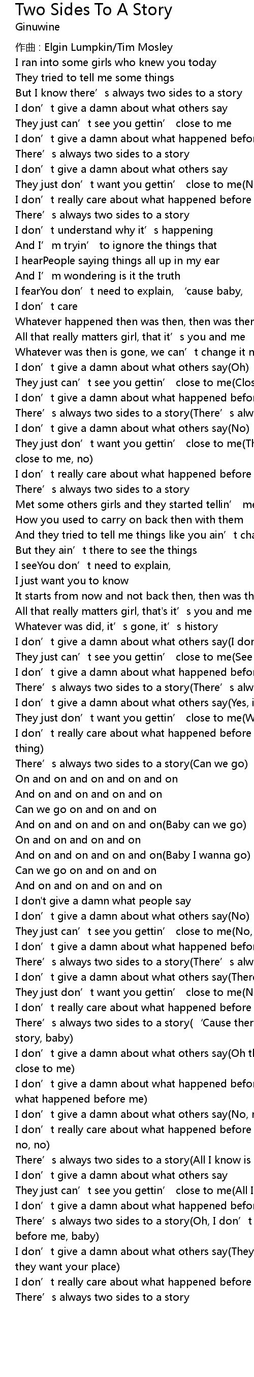 | There’s always two sides to a story(‘Cause there’s always two sides to a story, baby) | |