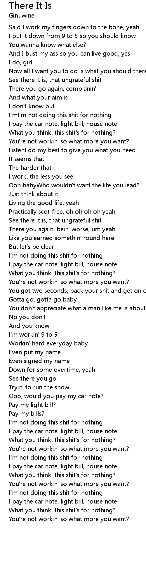 | You're not workin' so what more you want? |