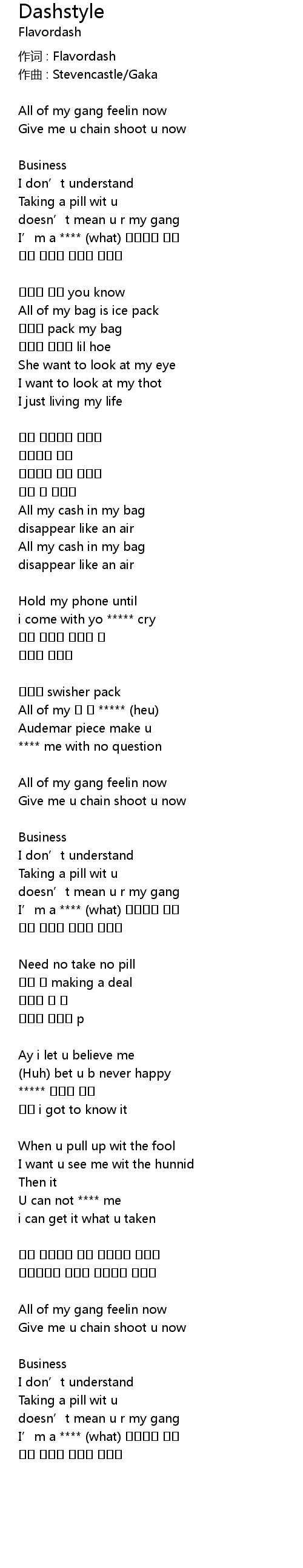 | 作词 : Flavordash | |