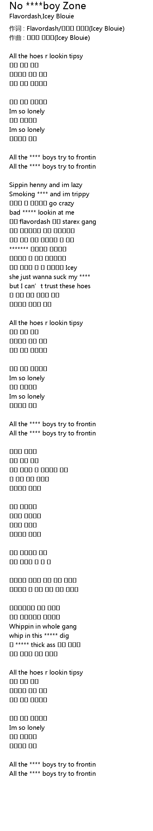 | 歌曲 | No ****boy Zone |