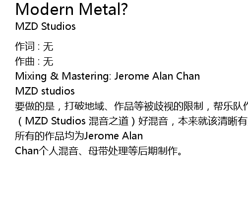 | 所有的作品均为Jerome Alan Chan个人混音、母带处理等后期制作。 |