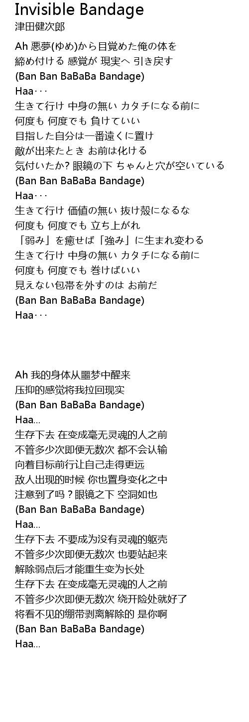 | 歌曲 | Invisible Bandage |