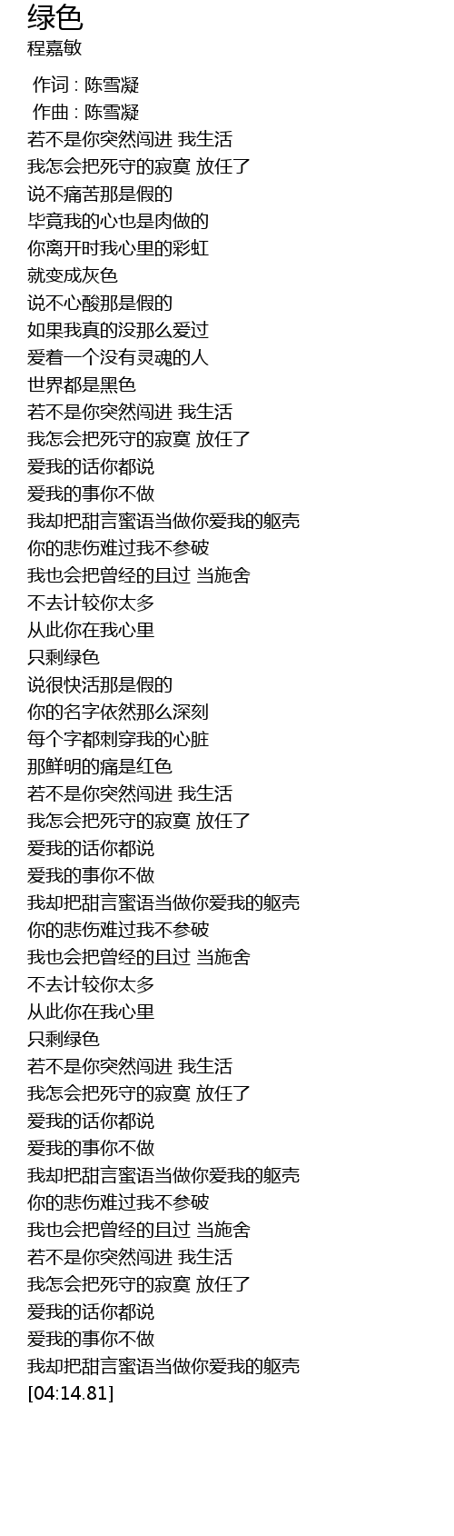 | [01:24.09] | zhǐ shèng lǜ sè |