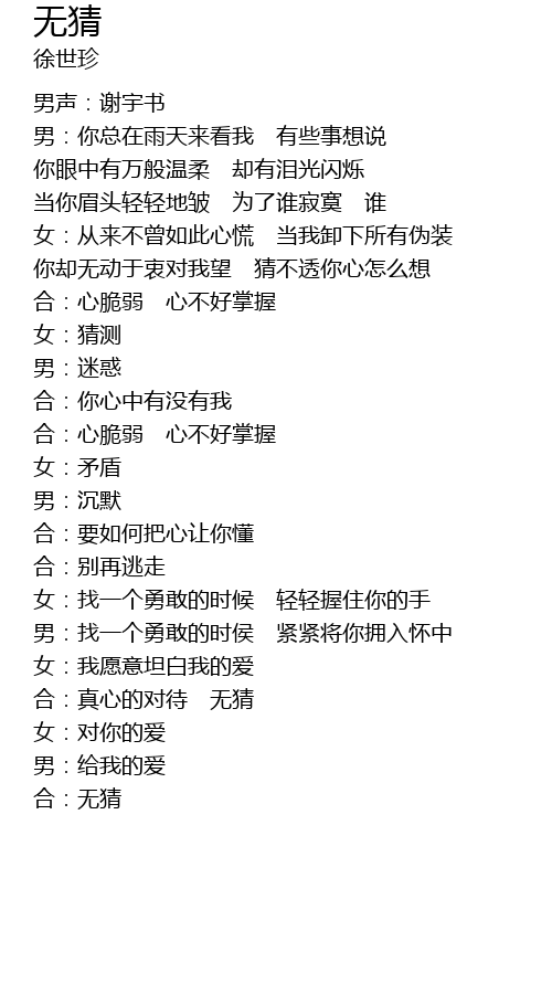 | 你却无动于衷对我望 猜不透你心怎么想 | |