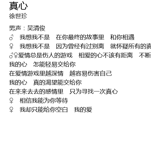 | 在来来去去的感情里 只为寻找一次真心 | |