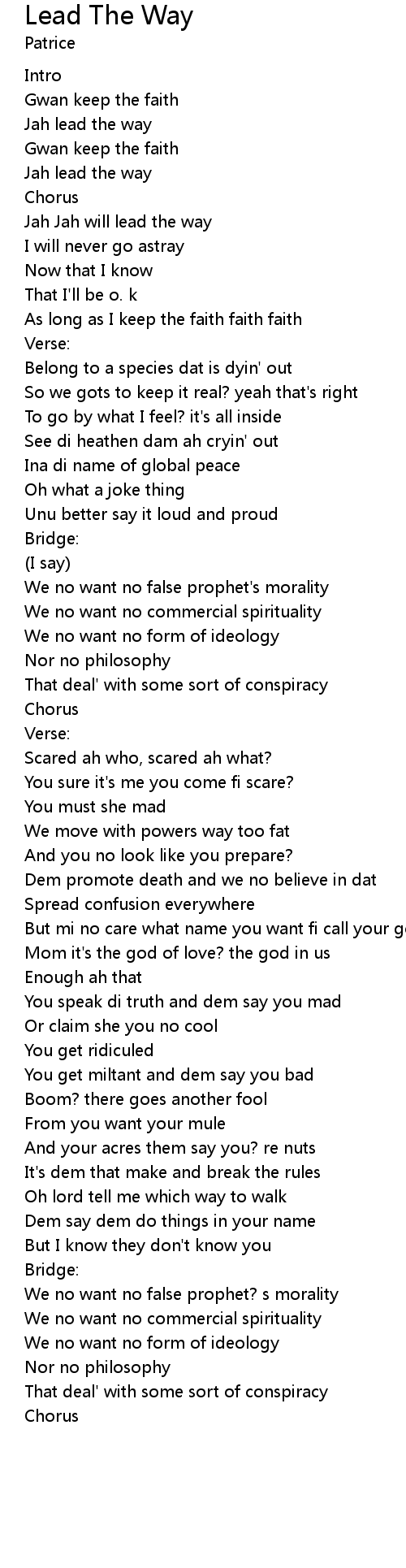 | Jah Jah will lead the way | |
