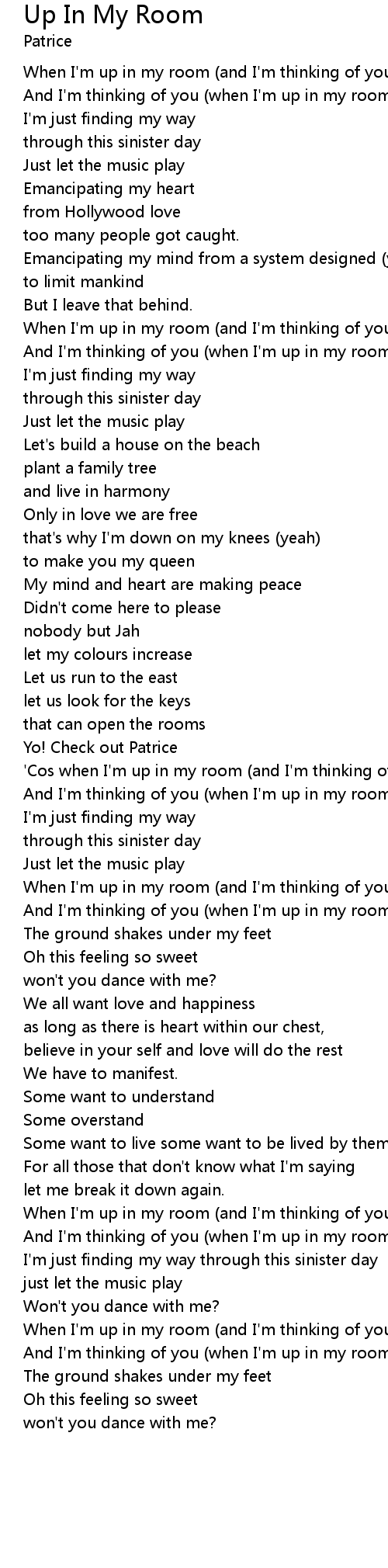 'Cos when I'm up in my room (and I'm thinking of you) |