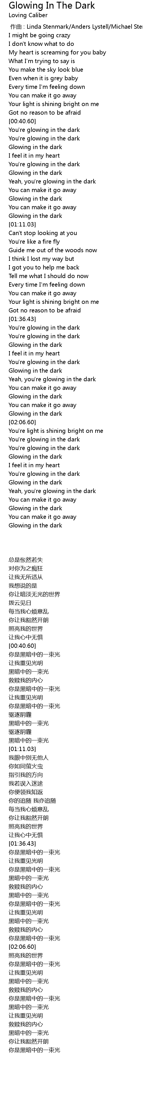 | [00:54.95] | Yeah, you' re glowing in the dark |