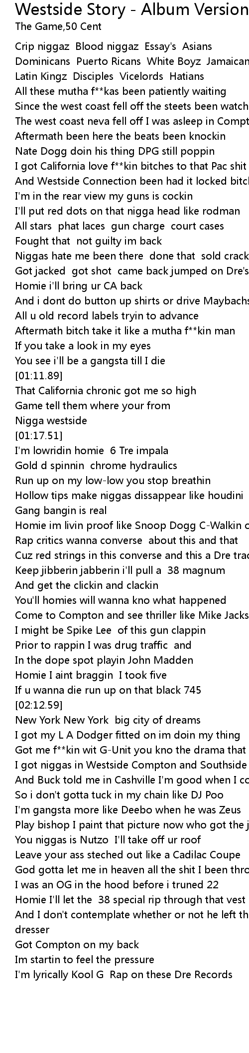 | [02:42.58] | I got niggas in Westside Compton and Southside Queens |