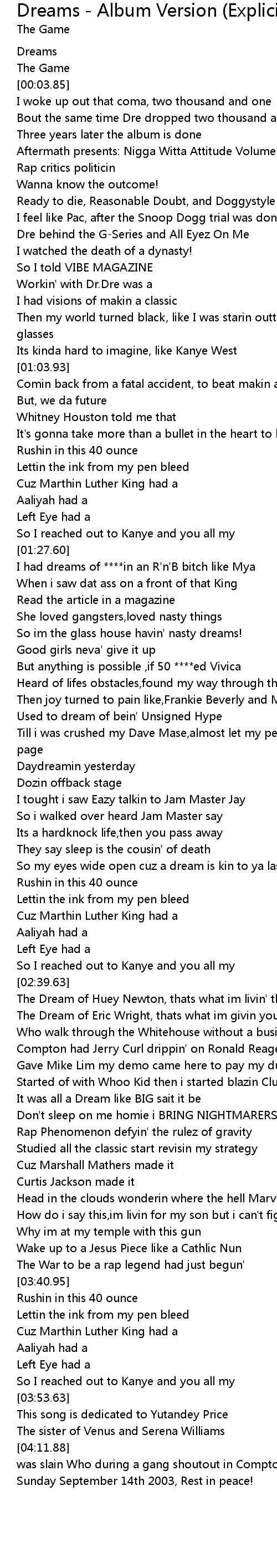 So my eyes wide open cuz a dream is kin to ya last breath |
