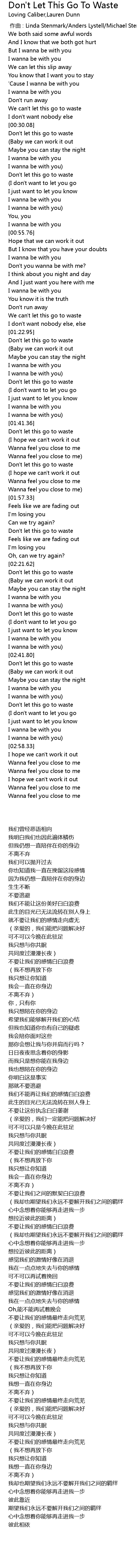 | [00:41.56] | 不要让我们的感情白白浪费 |