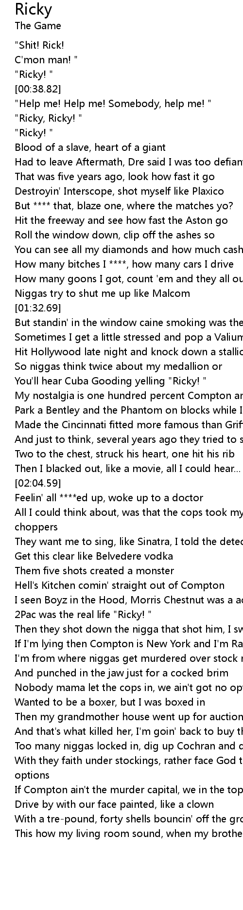 [02:39.84] I'm from where niggas get murdered over stock rims
