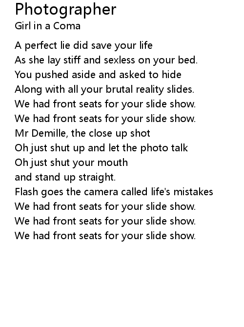 As she lay stiff and sexless on your bed. |