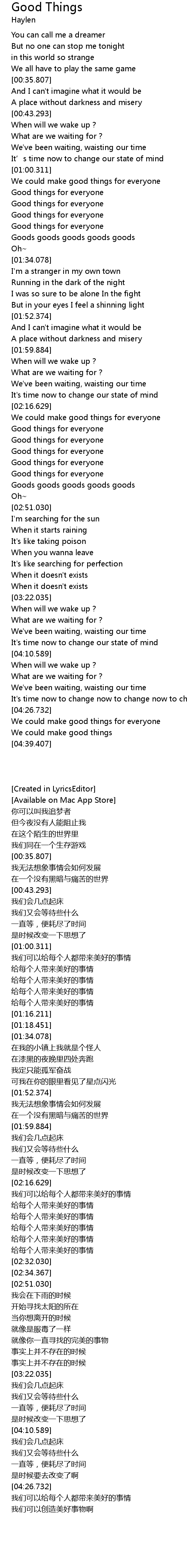 | [01:14.231] | Good things for everyone |