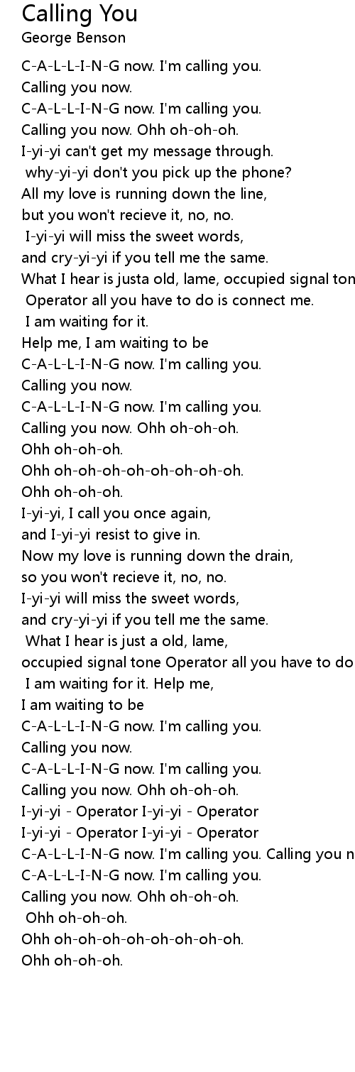| C-A-L-L-I-N-G now. I'm calling you. Calling you now. | |