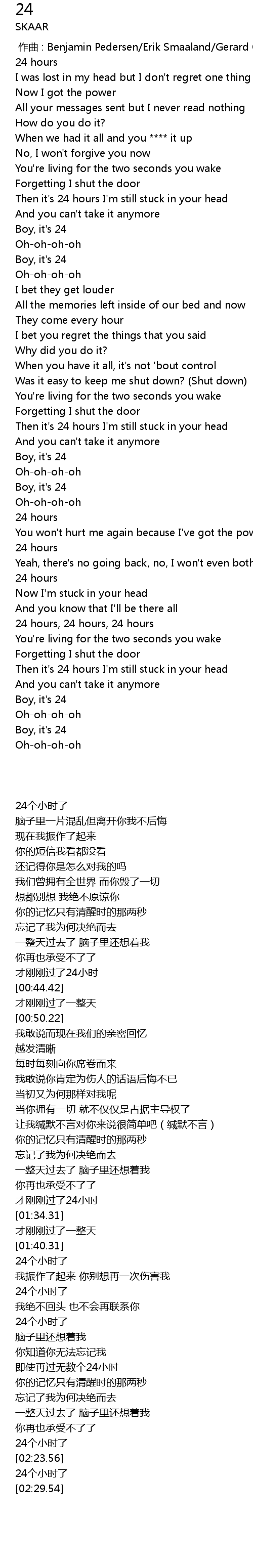 | [02:05.07] | 24 hours, 24 hours, 24 hours |