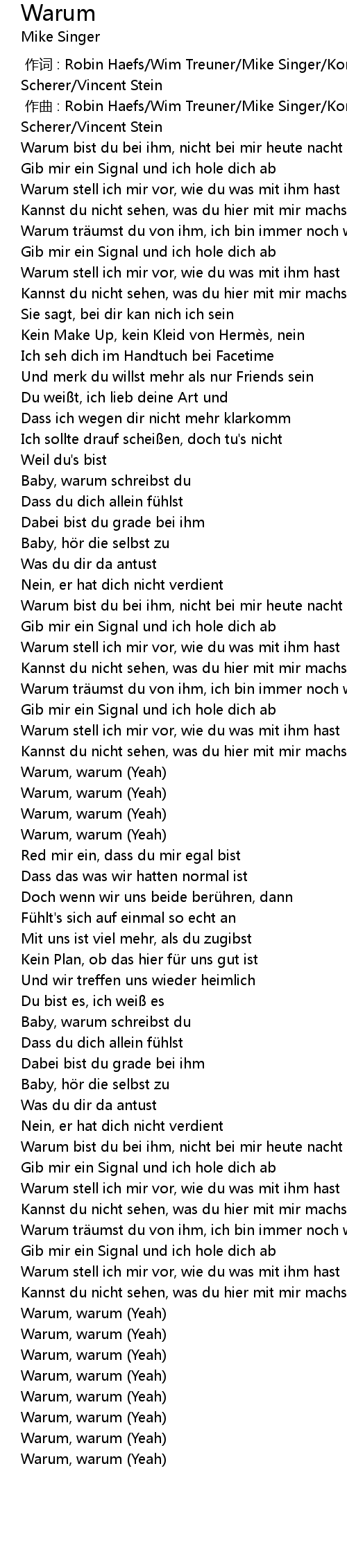 | [01:11.33] | Warum stell ich mir vor, wie du was mit ihm hast |