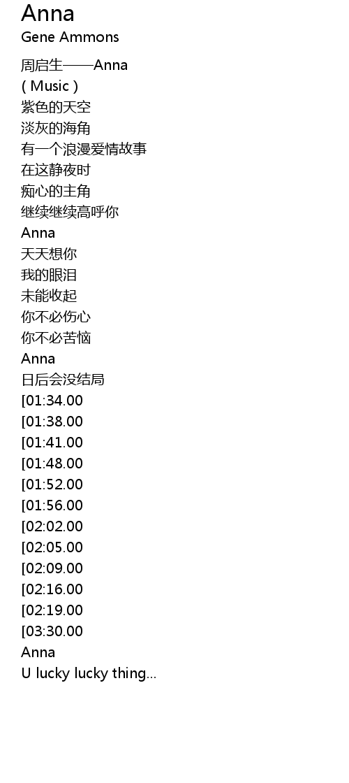 | [00:00.00] | zhōu qǐ shēng Anna |