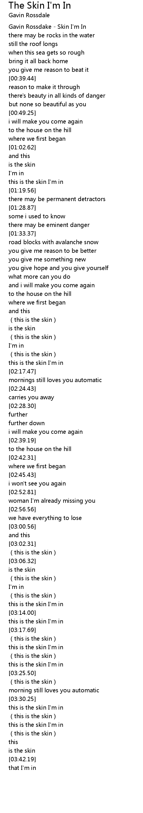 | [00:00.41] | Gavin Rossdake Skin I' m In |