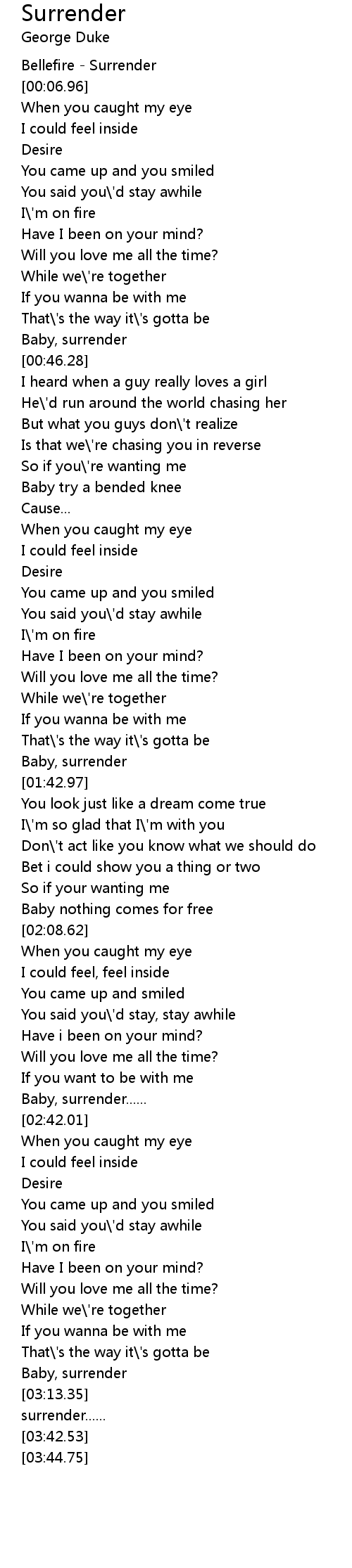 Baby, surrender...... |