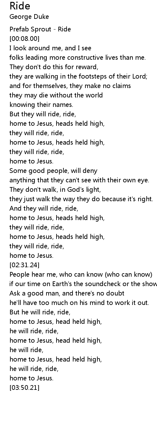 But he will ride, ride, |
